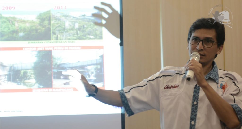 Intrias Herlistiarto dari Kereta Anak Bangsa sedang mempresentasikan jalur Banjar-Pangandaran-Cijulang di forum diskusi