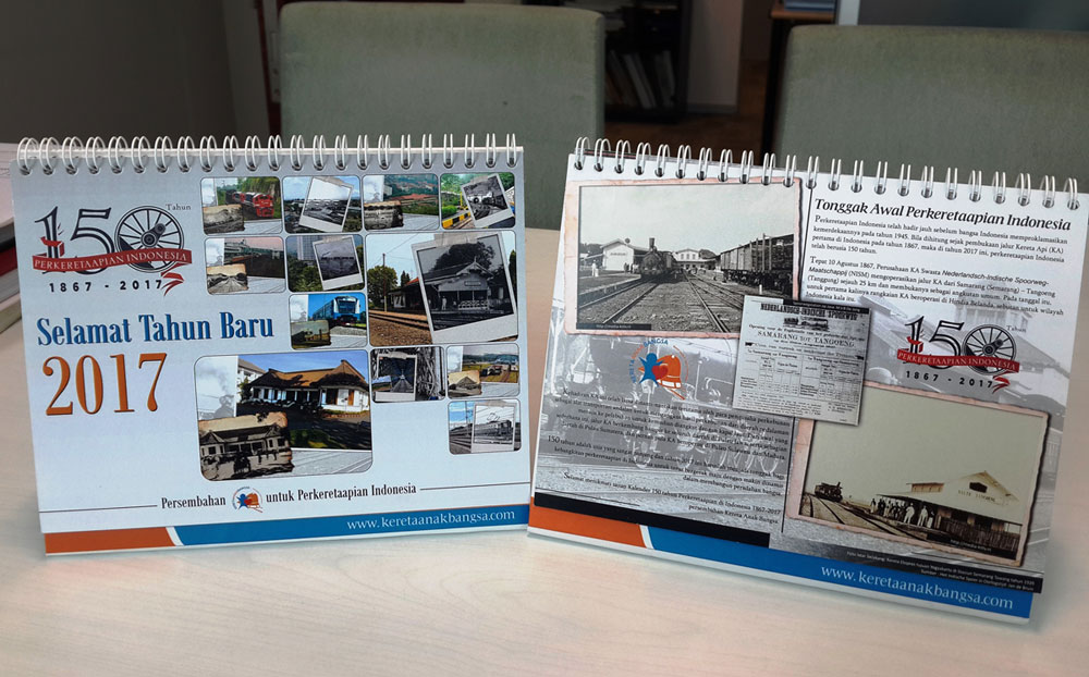 Untuk menyambut dan memaknai sejarah panjang perkeretaapian tersebut, Kereta Anak Bangsa mencoba memberikan sumbangsihnya dengan mempersembahkan suatu karya dalam wujud sebuah kalender meja tahun 2017, yang diberi tajuk Kalender 150 tahun Perkeretaapian Indonesia.